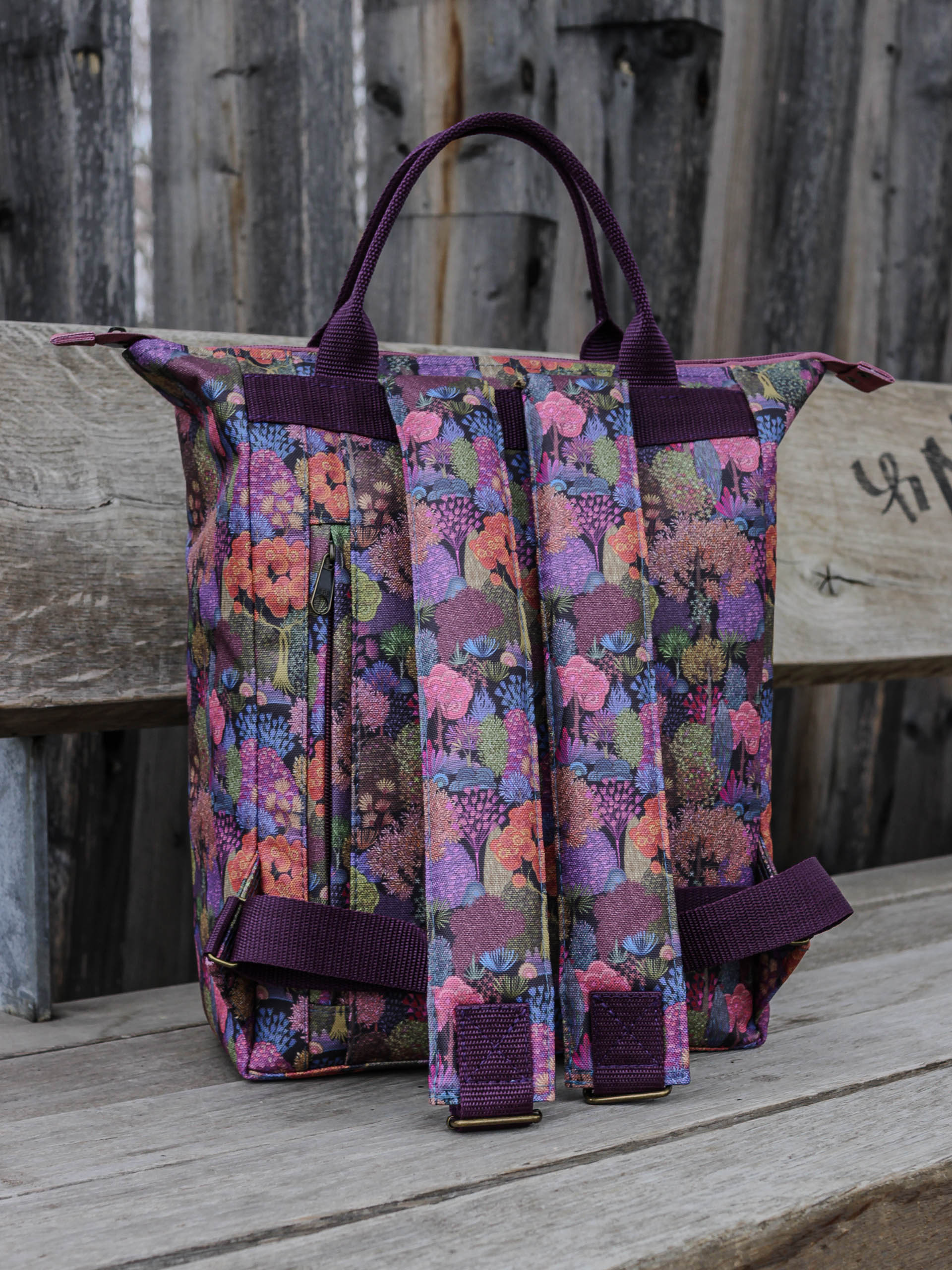 Limitált darabszámú, egyedi gyártású textilekkel, kézzel készített hátizsákokat.