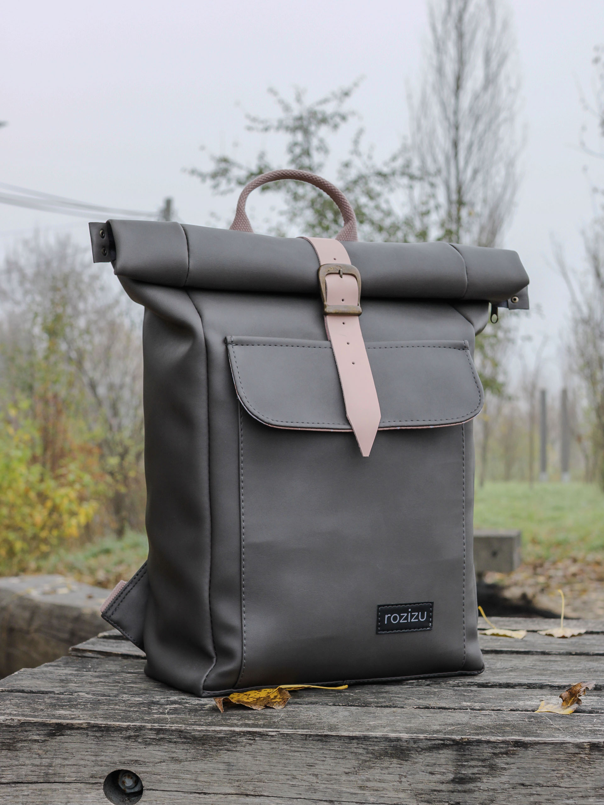 Vízálló, nagyméretű, egyedi gyártású textilbőr hátizsák.