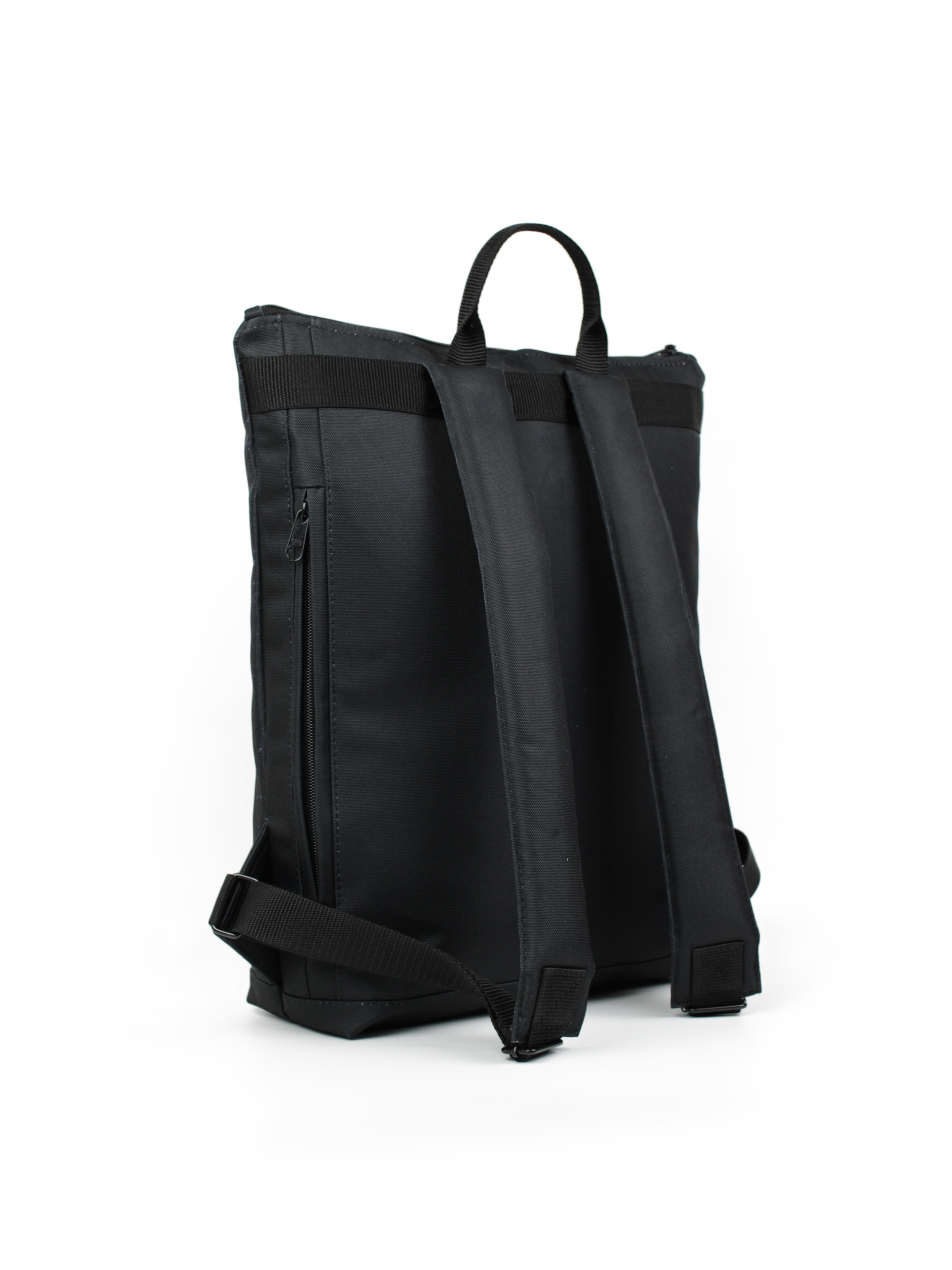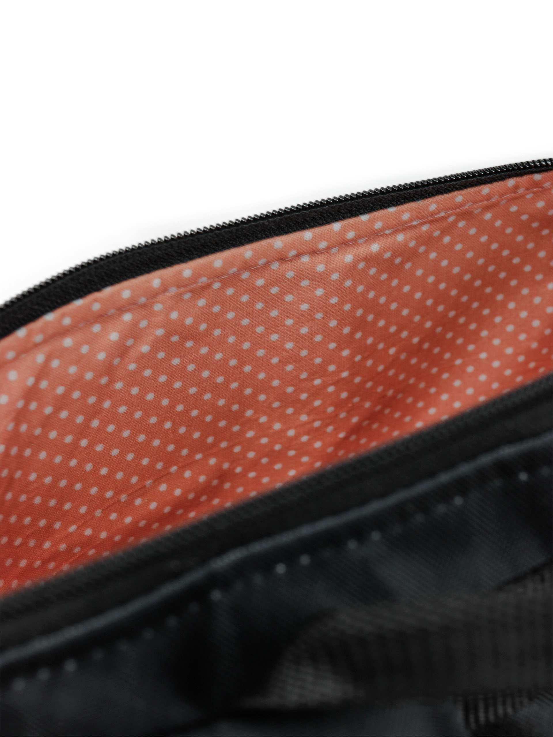 Belsejében kulcstartó karabiner, 2 nyitott és 1 nagy cipzáros, háta külső felén 23×23 cm-es cipzáros zseb található.