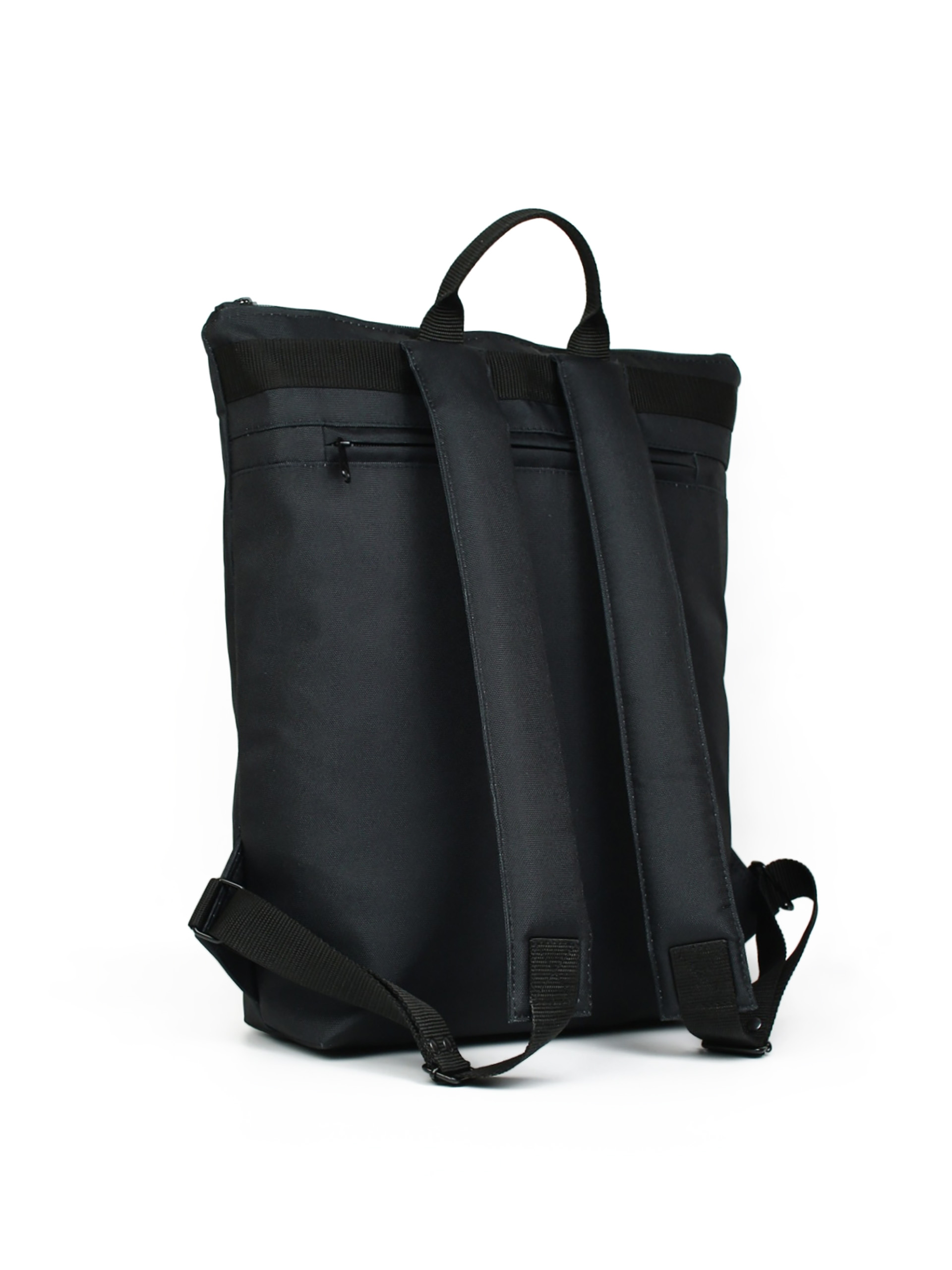 Vízálló, közepes méretű, egyedi gyártású textilbőr hátizsák.