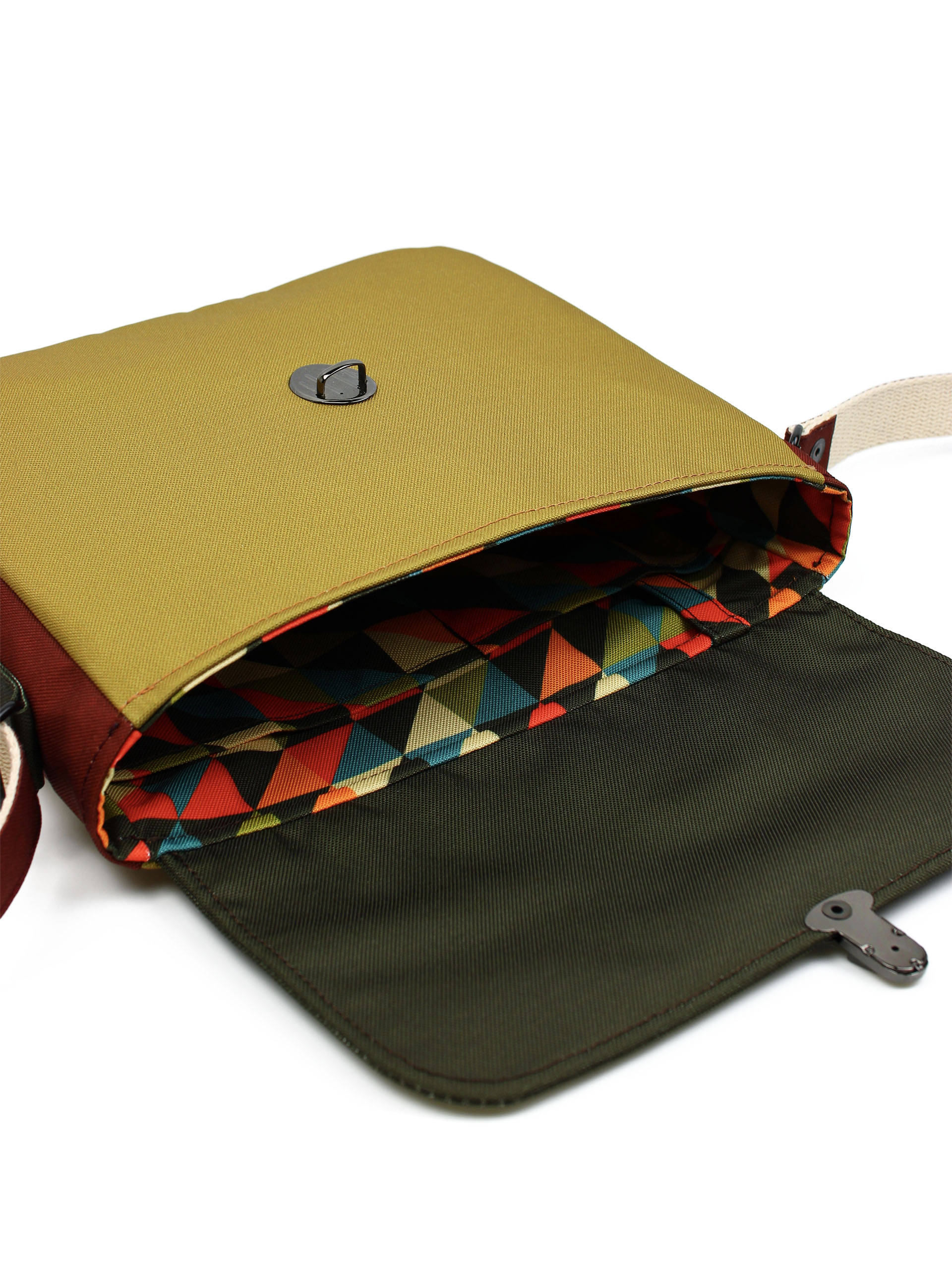 Vízálló, kisméretű, egyedi gyártású oldaltáska.