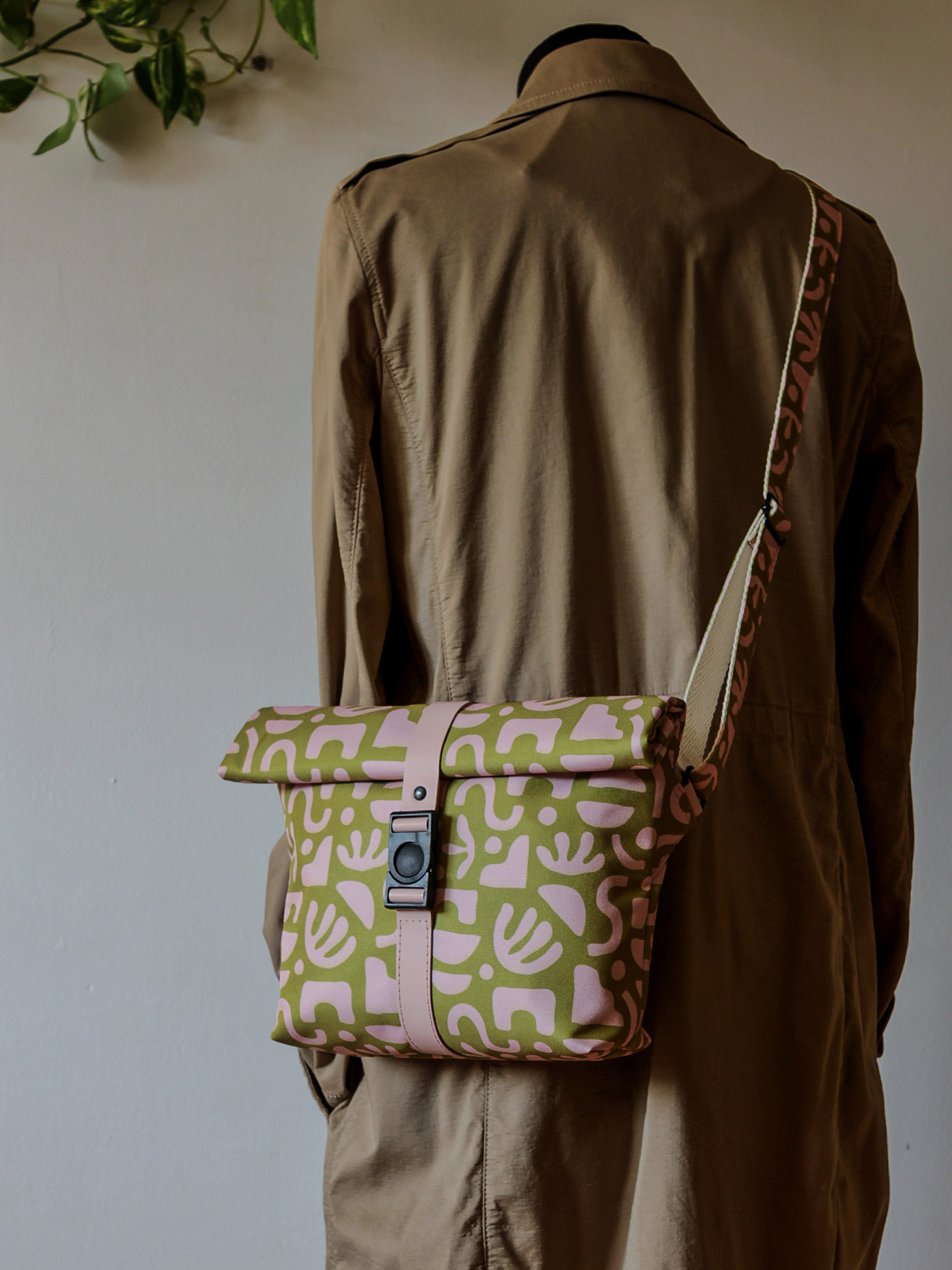 Vízálló, kisméretű, egyedi gyártású oldaltáska.