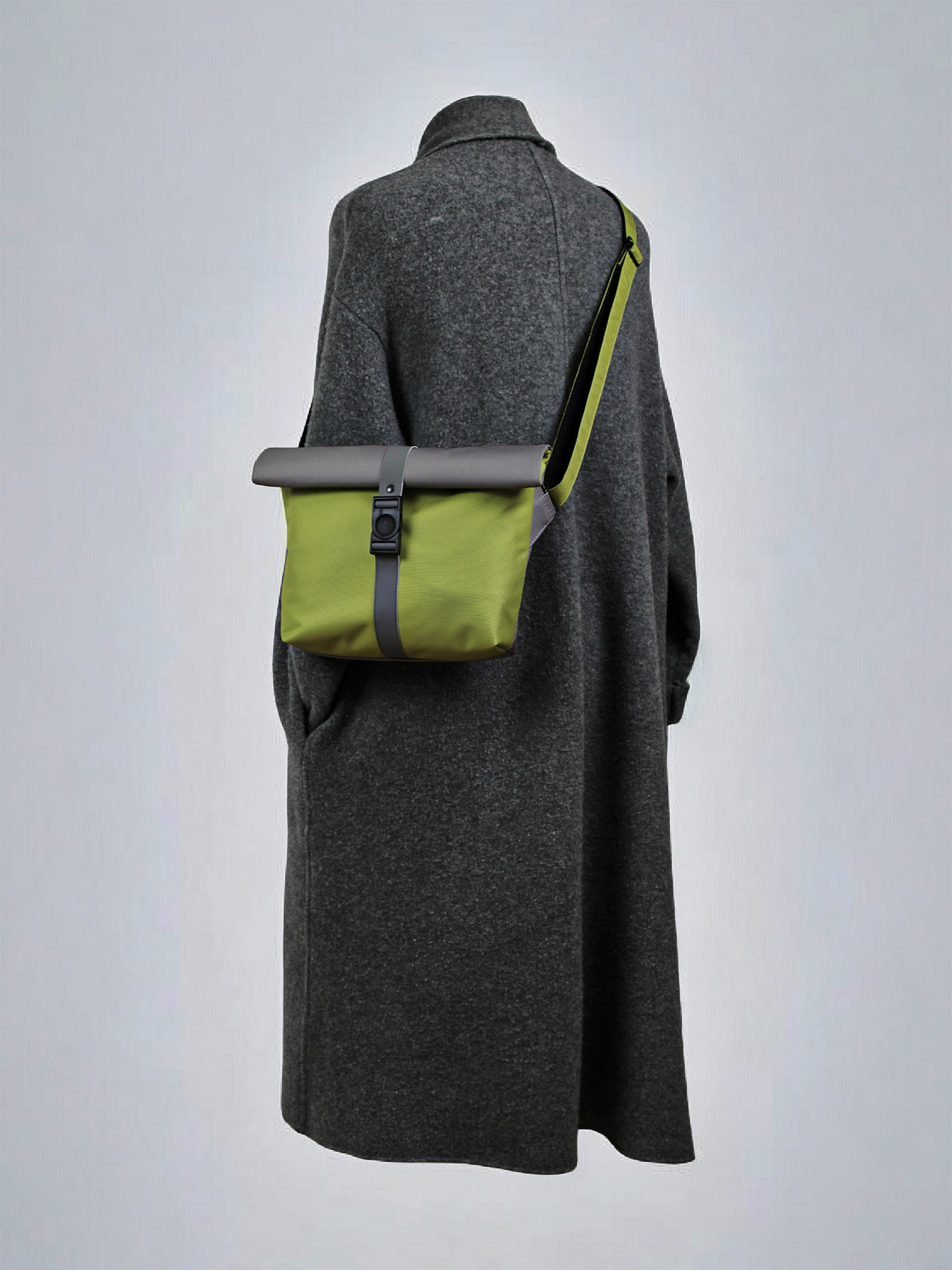 Vízálló, kisméretű, egyedi gyártású oldaltáska.