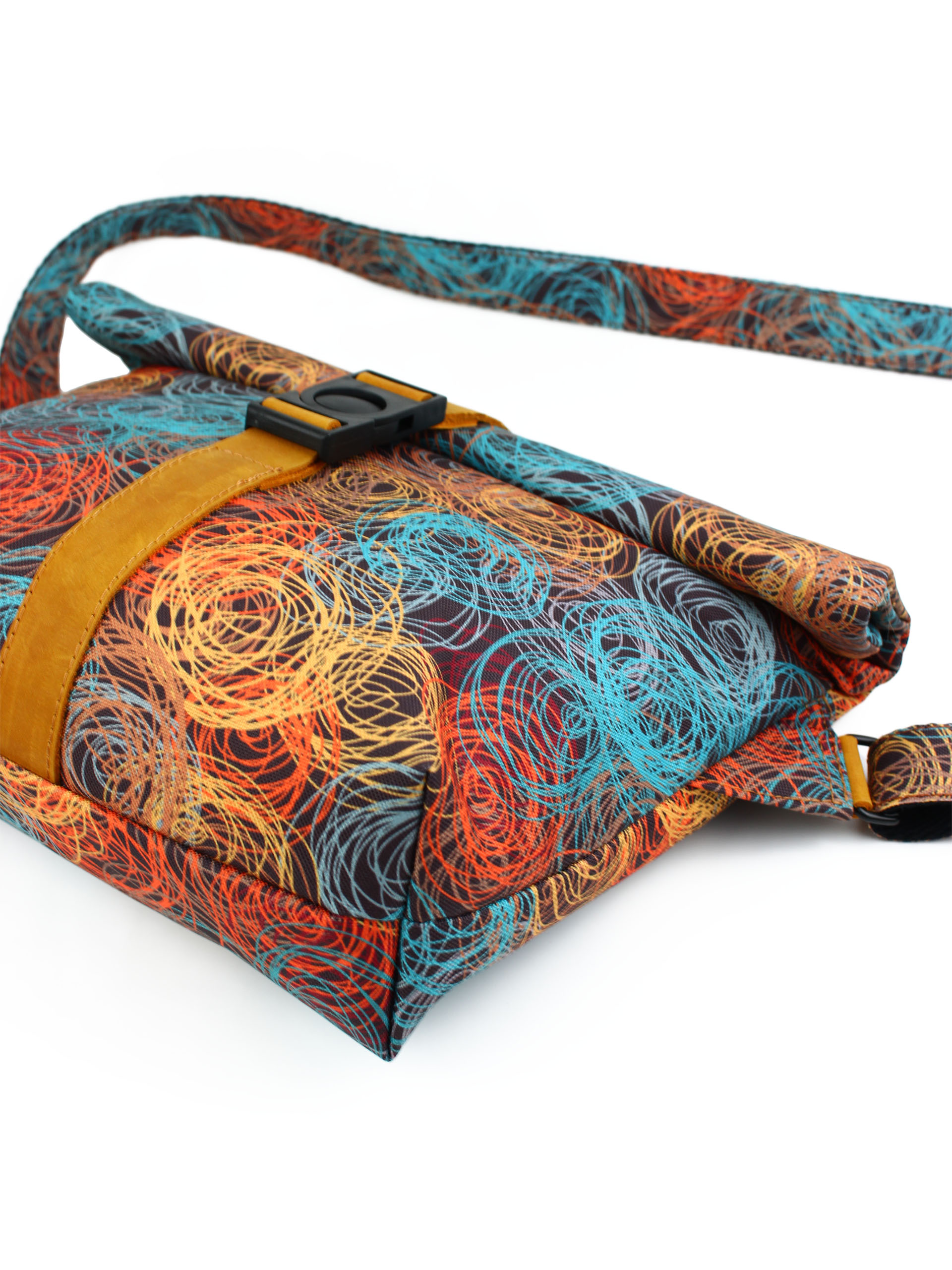 Vízálló, kisméretű, egyedi gyártású oldaltáska.